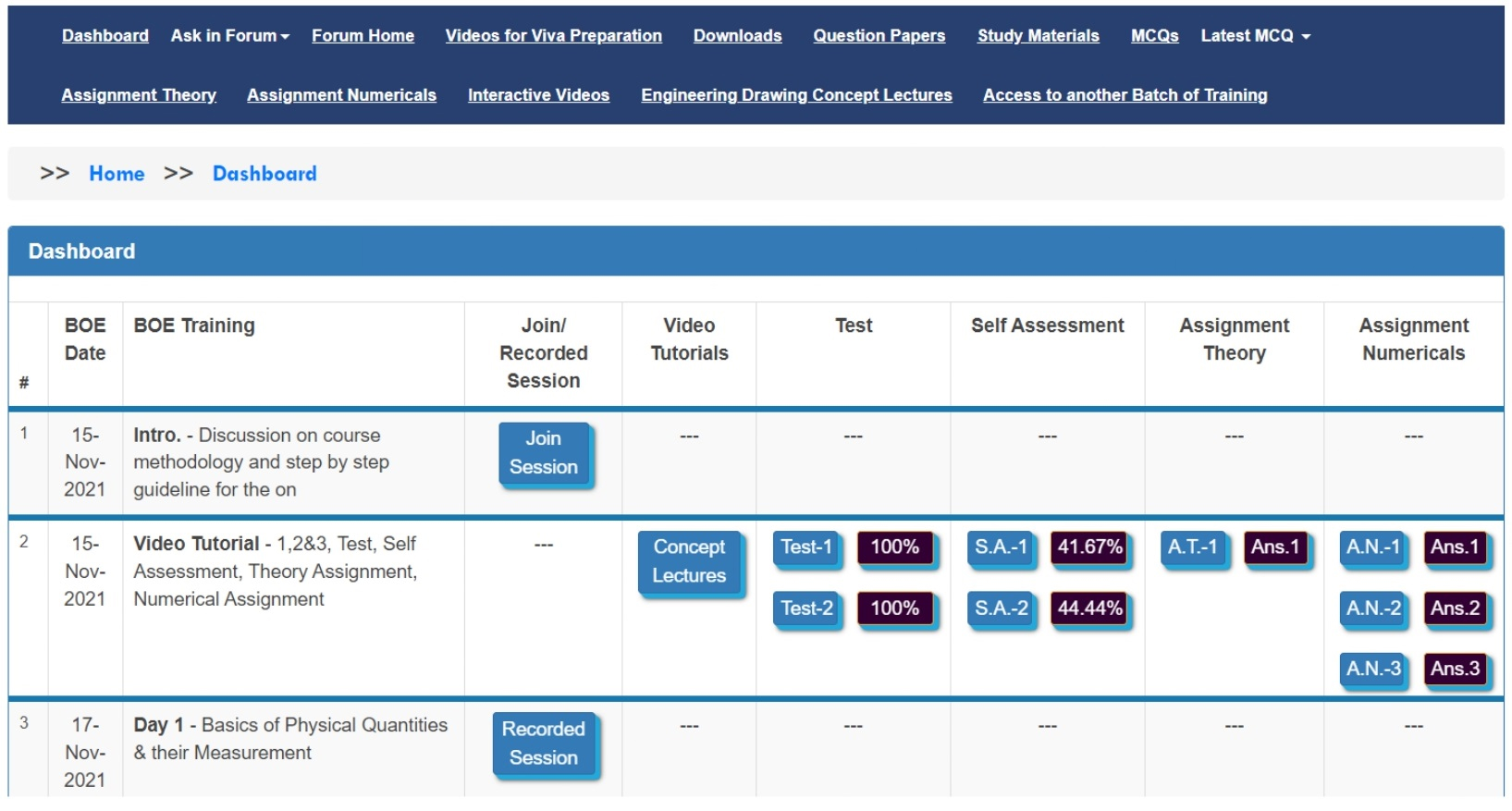 A dashboard serves as a personalized, centralized hub for participants on the website, providing easy access to a variety of resources and features. It is designed to streamline the learning experience and help participants effectively manage their studies and track their progress. Here are some key components of the dashboard: